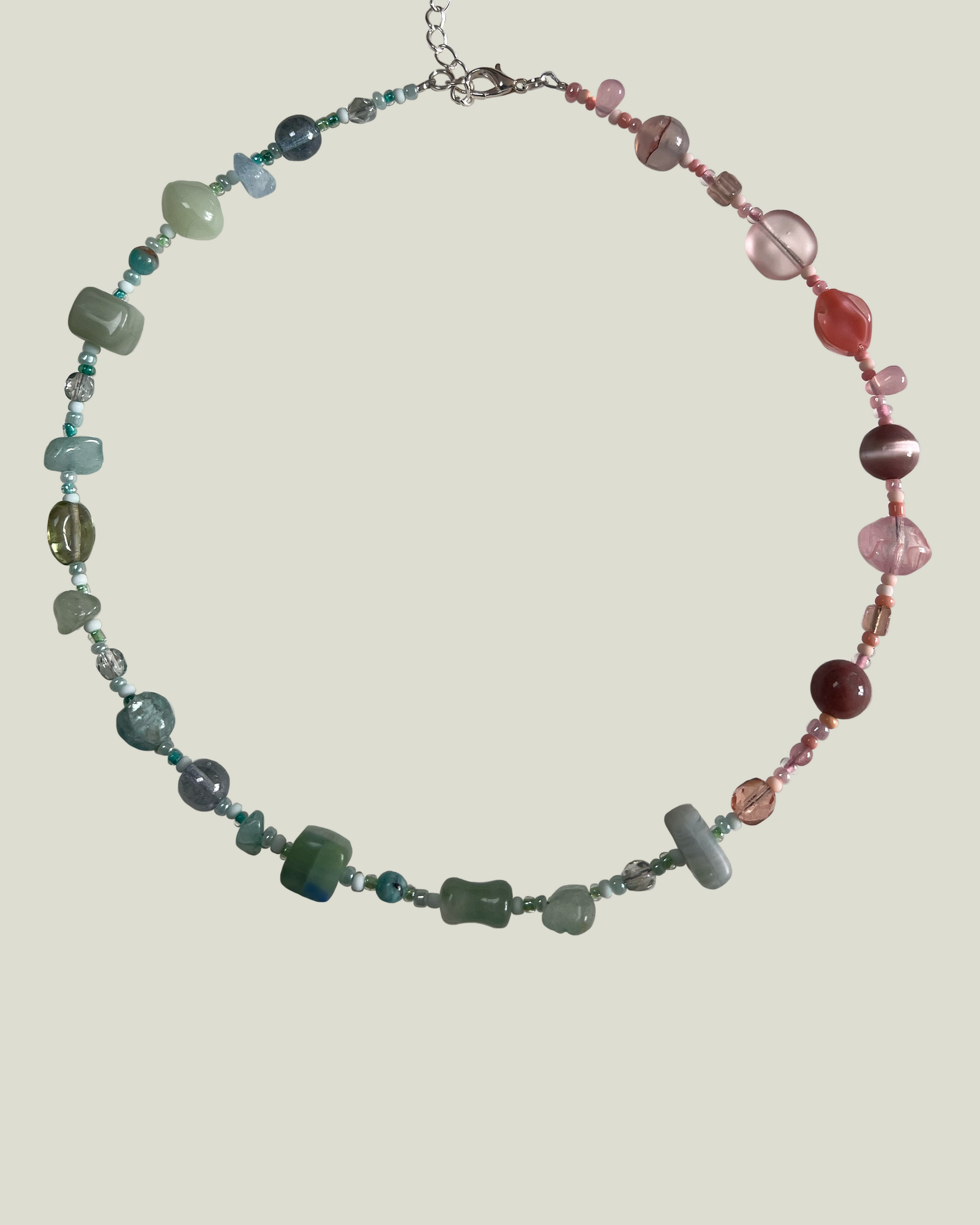 All our products are made from glass and stone beads. Chains and clasps are made from a sterling silver or silver metal finish.