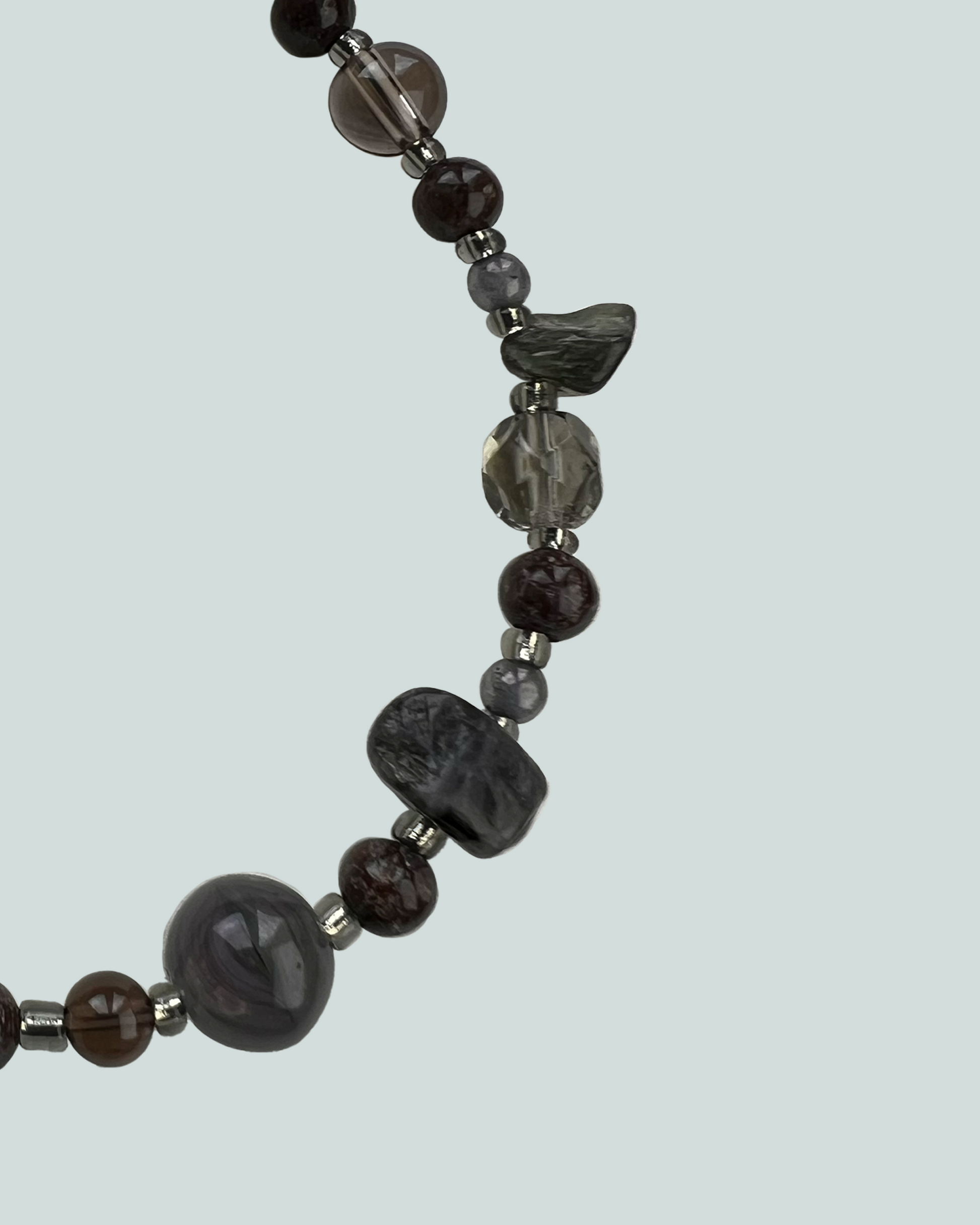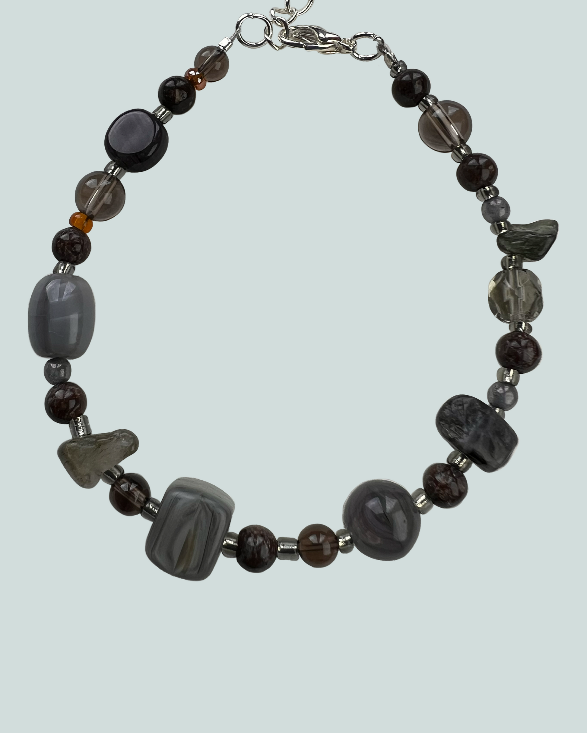 All our products are made from glass and stone beads. Chains and clasps are made from a sterling silver or silver metal finish.